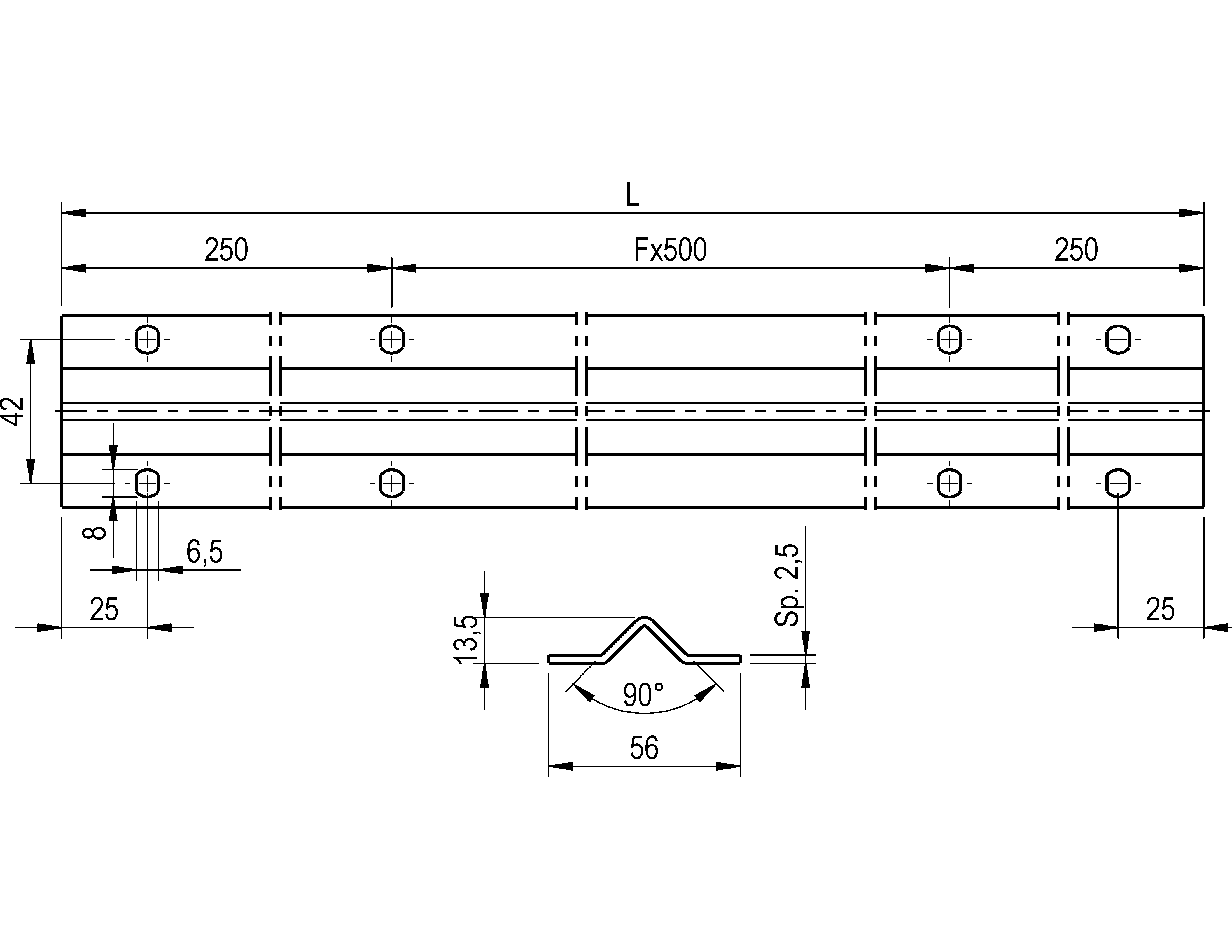 Binario V a fissare INOX giunzione 907IX.09 mt.3